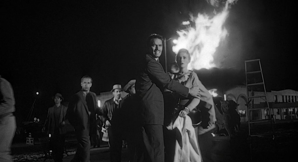 Welles use du noir et blanc avec une intensité presque expressionniste : contre-plongées déformantes écrasant les personnages, éclairages violents, entre ombre et surexposition, décors labyrinthiques, ruelles étroites, hôtels glauques, ponts industriels… La ville elle-même devient un personnage oppressant, miroir de la confusion morale du récit. Une signature de film noir absolument stupéfiante qui vient appuyer la puissance évocatrice de Welles qui n’en est pas à son coup d’essai dans le genre (Le Criminel, La Dame de Shanghai…).
