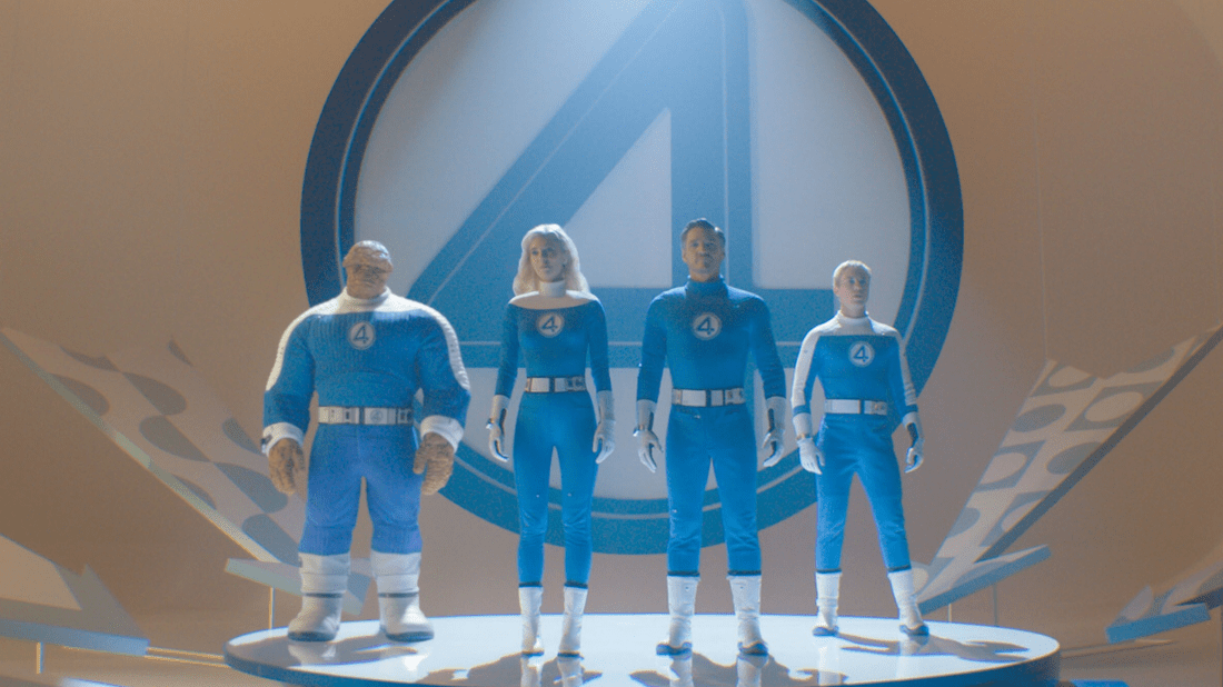 Ce qui surprend dans les premières minutes, c’est le choix d’introduction. Nous sommes plongés dans un monde qui existe déjà et cette existence est palpable. Les origines de ce quatuor sont expliquées avec une fluidité rarement vue dans une production Marvel et le style comic book est enfin clairement assumé. Ces premières images regorgent d’une vibe années 60/70 et tout ce qui faisait le style des premières aventures de cette famille est bien là. De la référence aux vilains obscurs de ces premières années jusqu’au style pop de l’époque, exacerbé par le thème principal composé par Michael Giacchino rappelant fortement sa prestation sur les Indestructibles. Tout est là pour nous faire vivre une période aujourd’hui révolue.