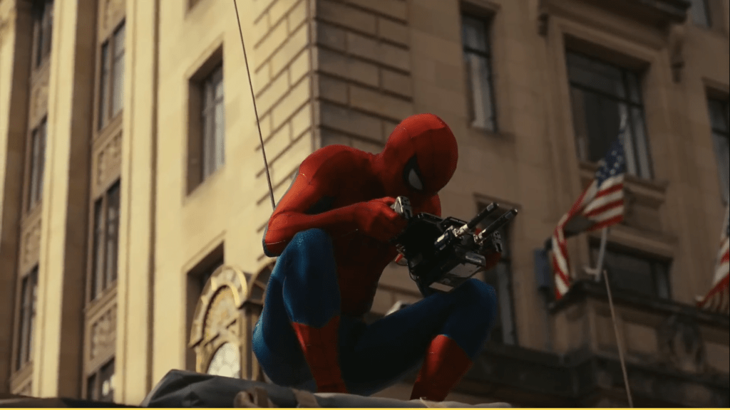 La scène qu’on découvre est une cascade réalisée en ville. Vêtu de sa combinaison rouge et bleu, Tom Holland atterrit sur un char d’assaut fonçant à toute allure dans la ville et force l’ouverture de la trappe du tank grâce à sa force surnaturelle. Des premières images qui nous donnent l’eau à la bouche.